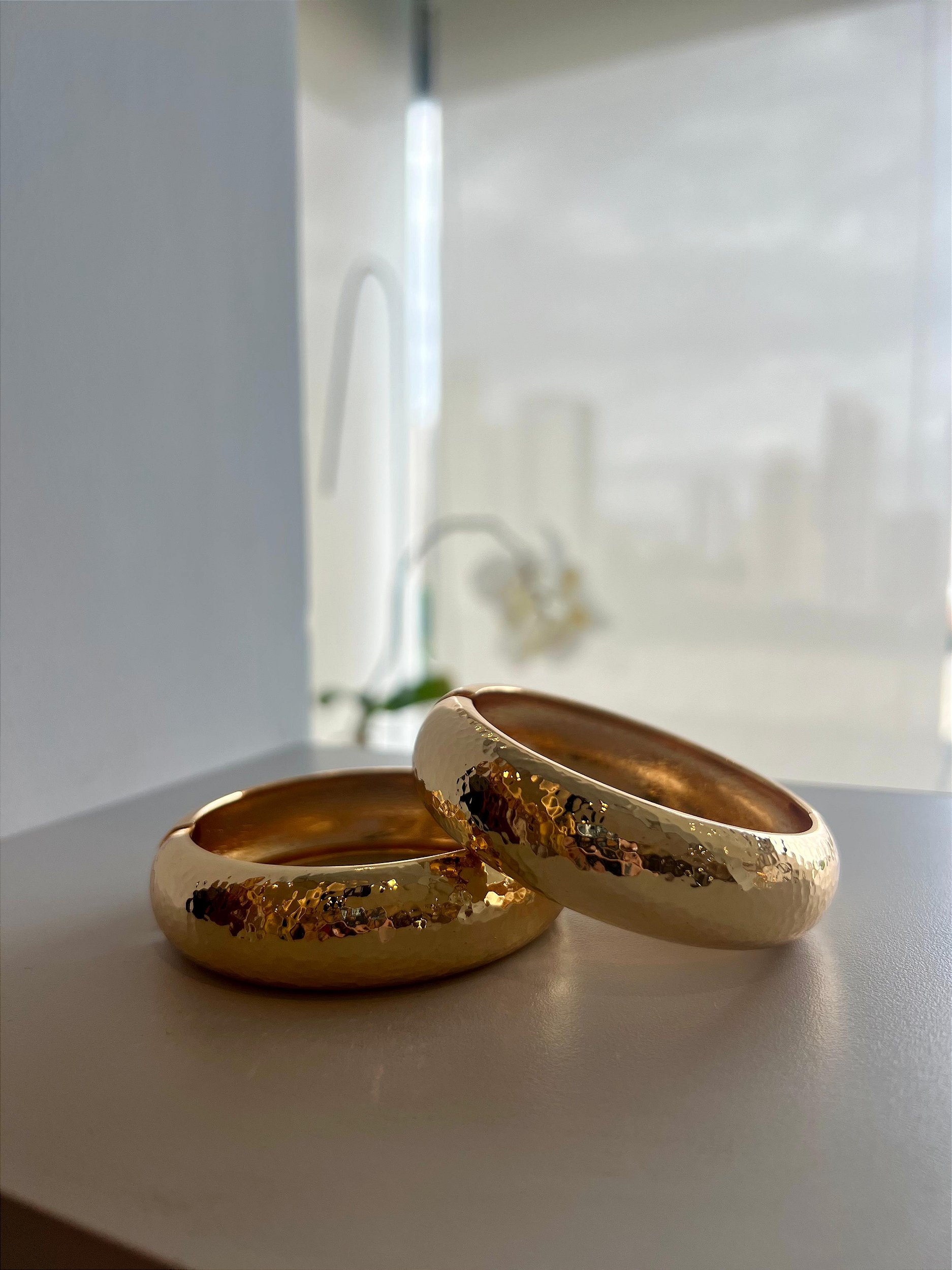 O bracelete dourado é um acessório atemporal que traduz elegância, força e sofisticação em um design clean e moderno. Com acabamento polido espelhado e estrutura encorpada, a peça se destaca pelo brilho intenso e pela presença marcante, elevando qualquer produção com um toque de luxo discreto.