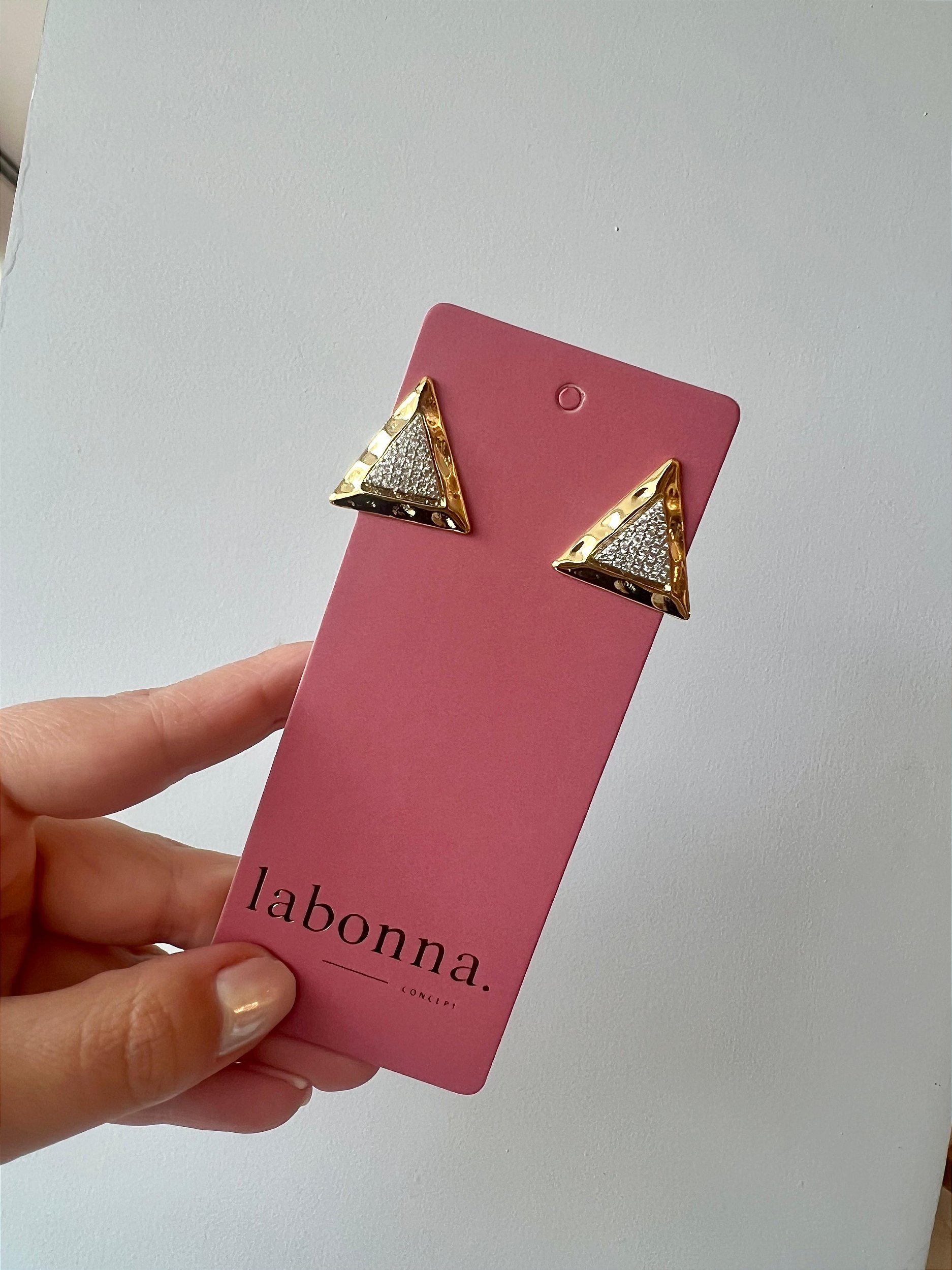 O brinco triangular dourado é a escolha ideal para quem busca um acessório moderno, elegante e cheio de personalidade. Com design geométrico em formato de triângulo, a peça combina o acabamento dourado polido com aplicação central de micro brilhos, criando um contraste sofisticado e atemporal.