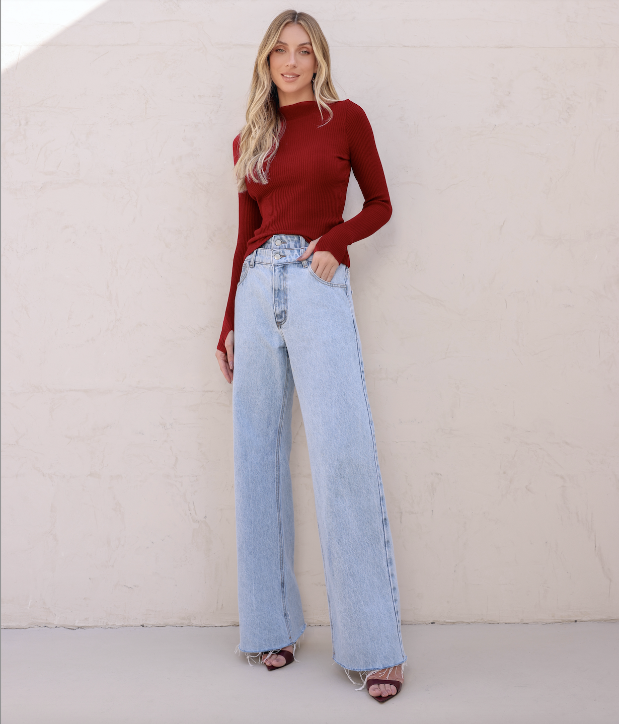 Cintura Alta com Cós Duplo: Proporciona um ajuste firme e elegante, destacando a silhueta. Fechamento em Zíper e Botão Frontal: Praticidade e segurança no vestir. Bolsos: Funcionais e estilosos, perfeitos para o dia a dia. Barra Desfiada: Detalhe moderno que adiciona um charme casual. Confeccionada em Jeans: Material durável, confortável e versátil.