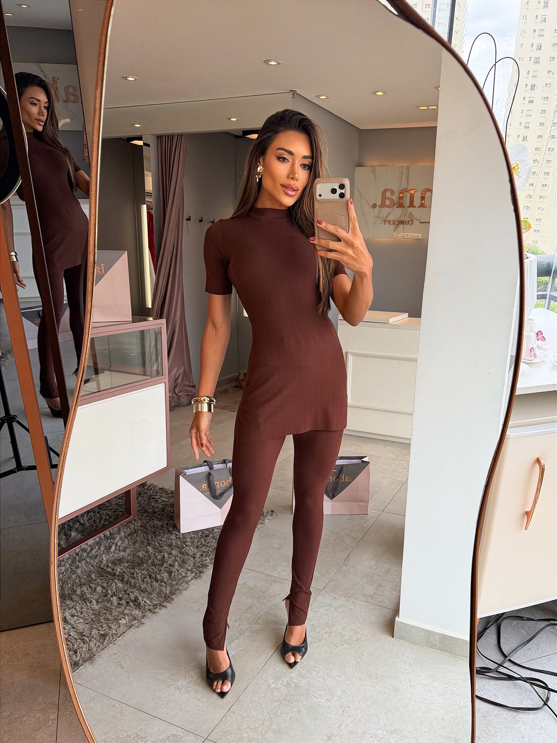 tecido encorpado, com elastano e gramatura alta e canelado diferenciado.