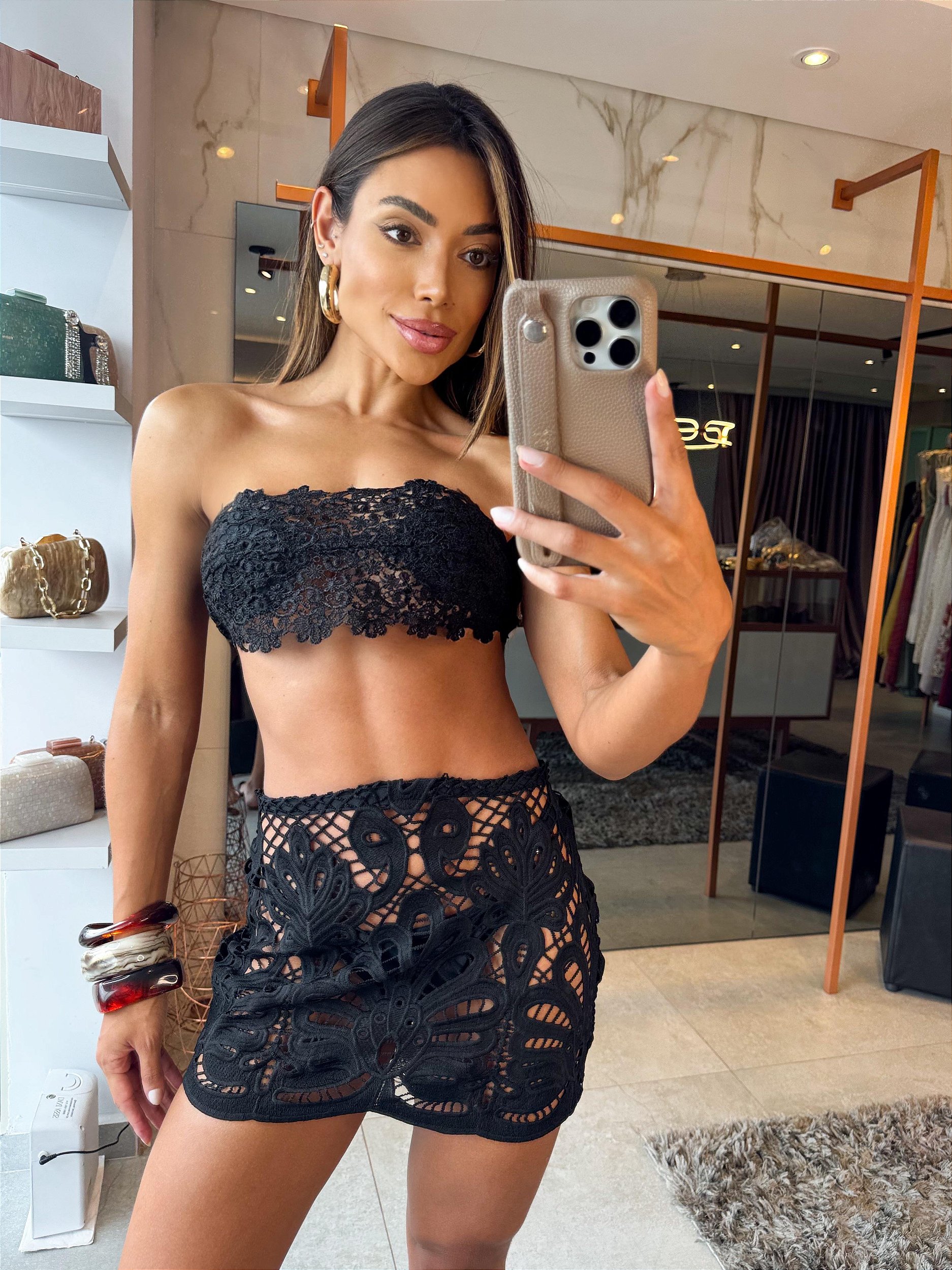 Saia em renda no mesmo tecido da parte de cima