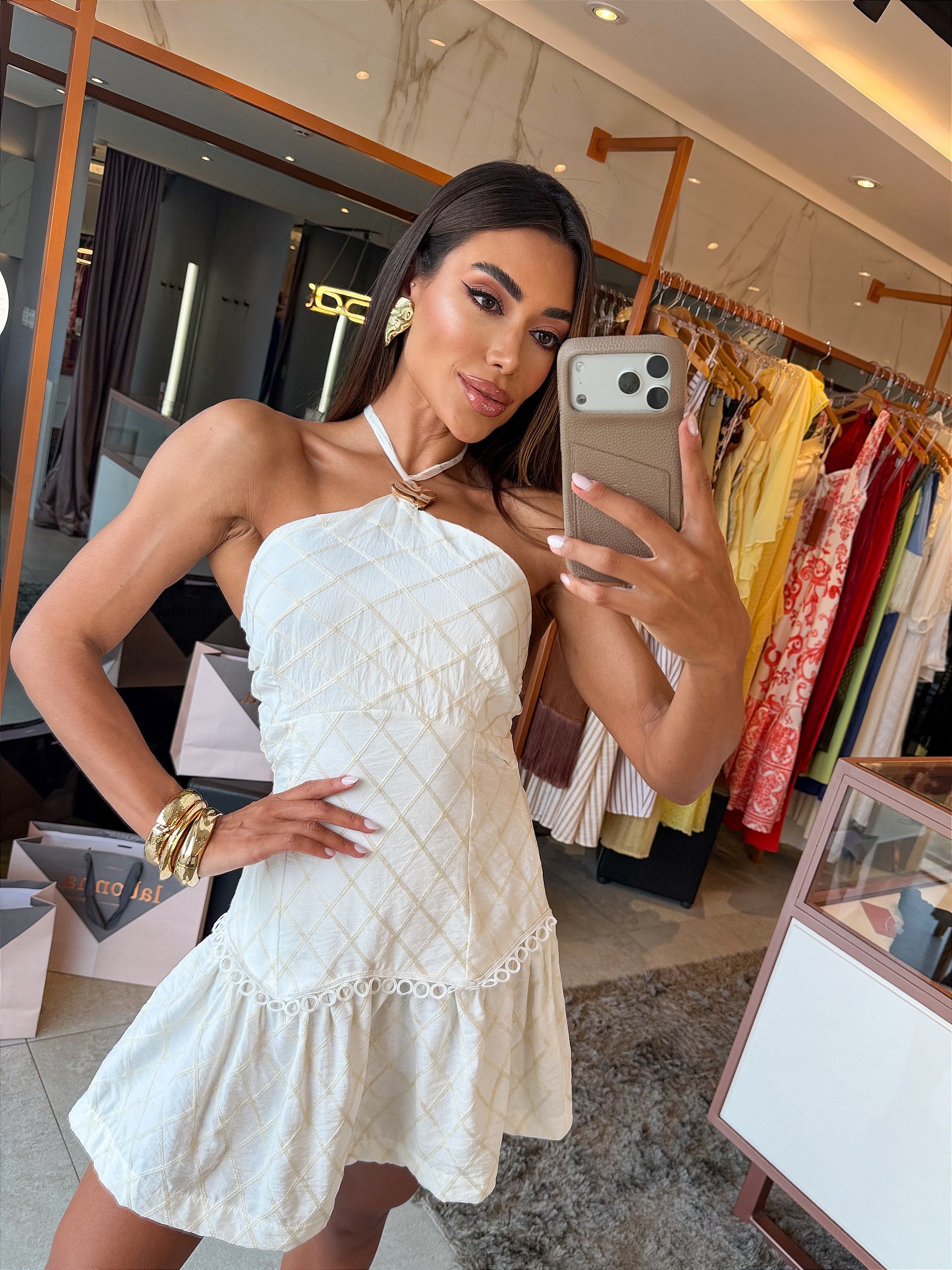 Delicado, feminino e cheio de charme, este vestido curto é a escolha perfeita para quem busca elegância com um toque moderno. Confeccionado em tecido bordado, ele traz um visual sofisticado e atemporal, ideal para diversas ocasiões.